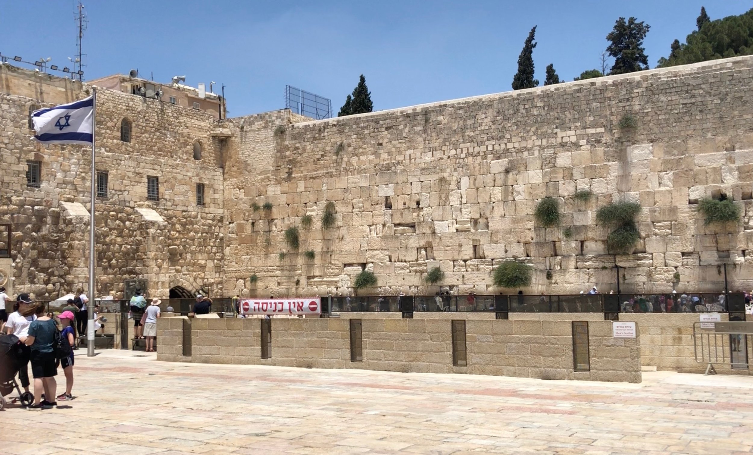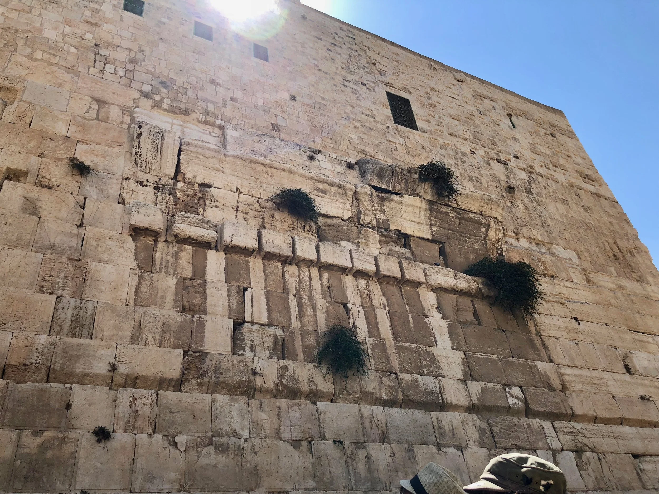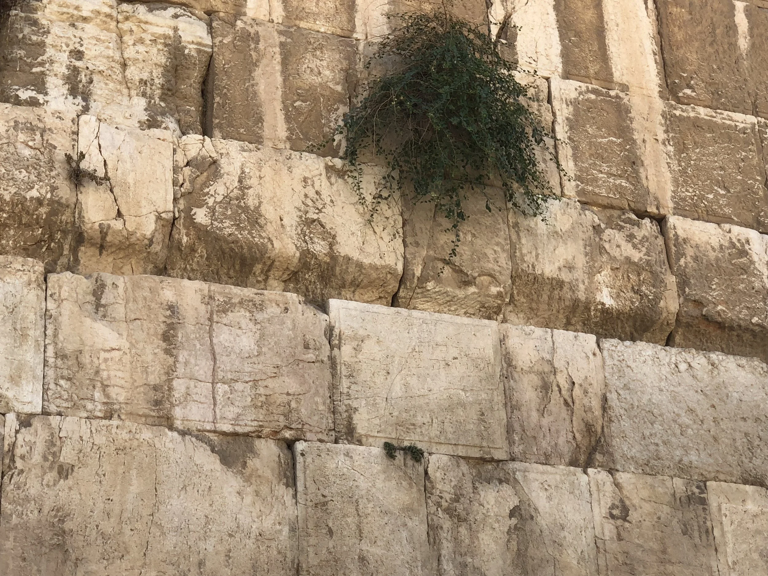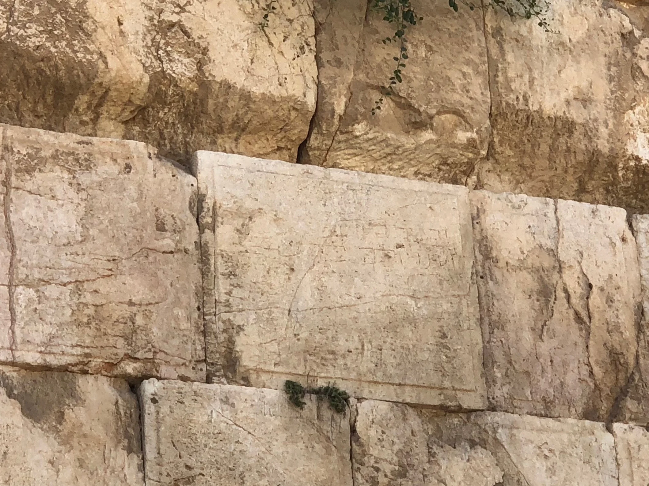 As we look at another section of the Western Wall, we are shown a Hebrew inscription, 2 stones beneath the plant. It is from Isaiah 66-14 loosely translated "If we can still see this, we should rejoice." Thousands of years and pilgrimages later, we do see this, and we are rejoicing.