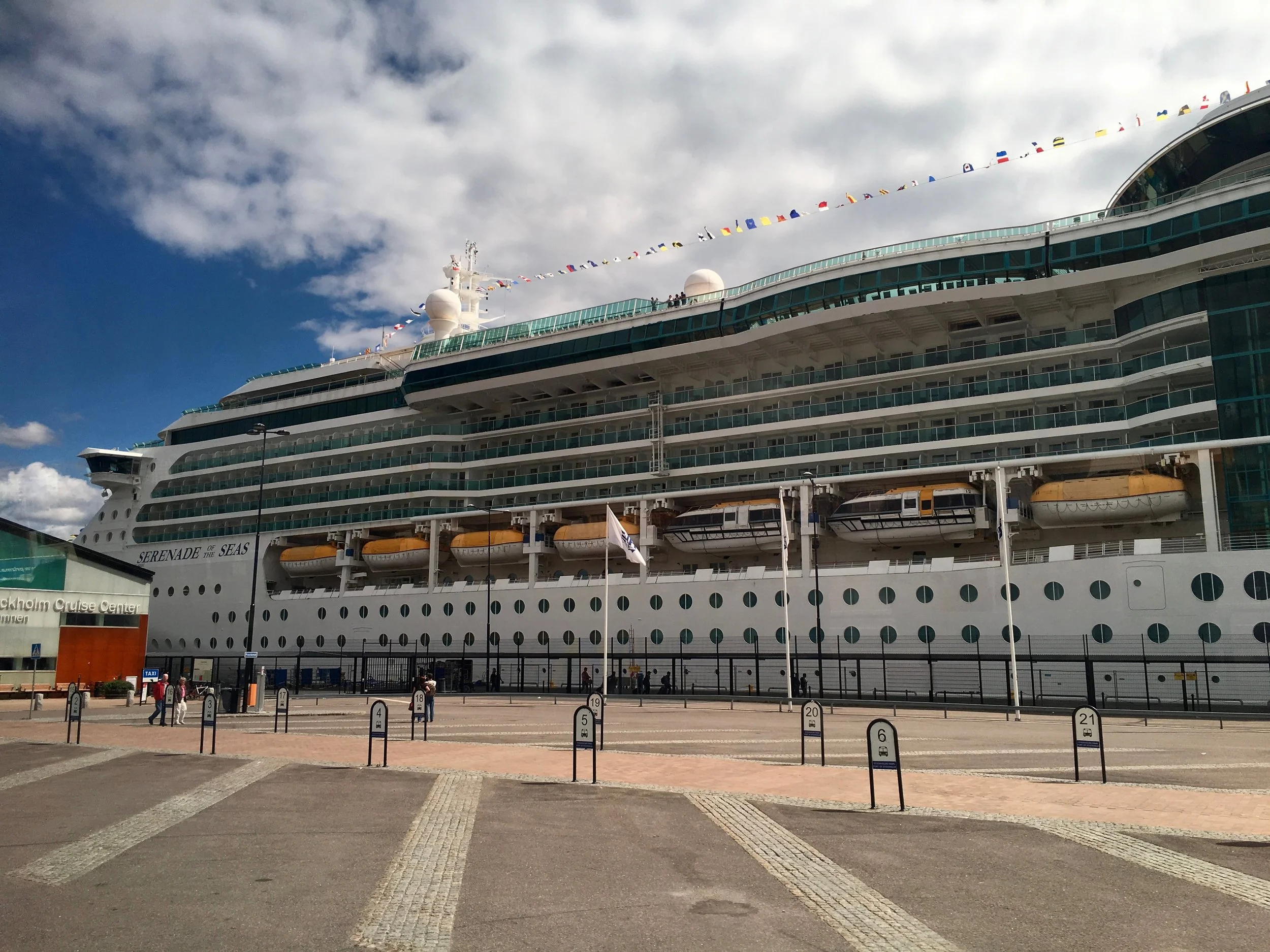 Saturday night we flew 8 hours, non-stop, overnight from Chicago to Stockholm. It was uneventful, until the 10 STRAIGHT MINUTES of some of the worst turbulence I've experienced occurred, somewhere over Canada. I'll save you the grisly details of how this affected Sara - use your imagination - it's probably accurate. Once we arrived in Stockholm it was an easy 45 minute bus ride to the ship and we finally felt like we were on vacation!